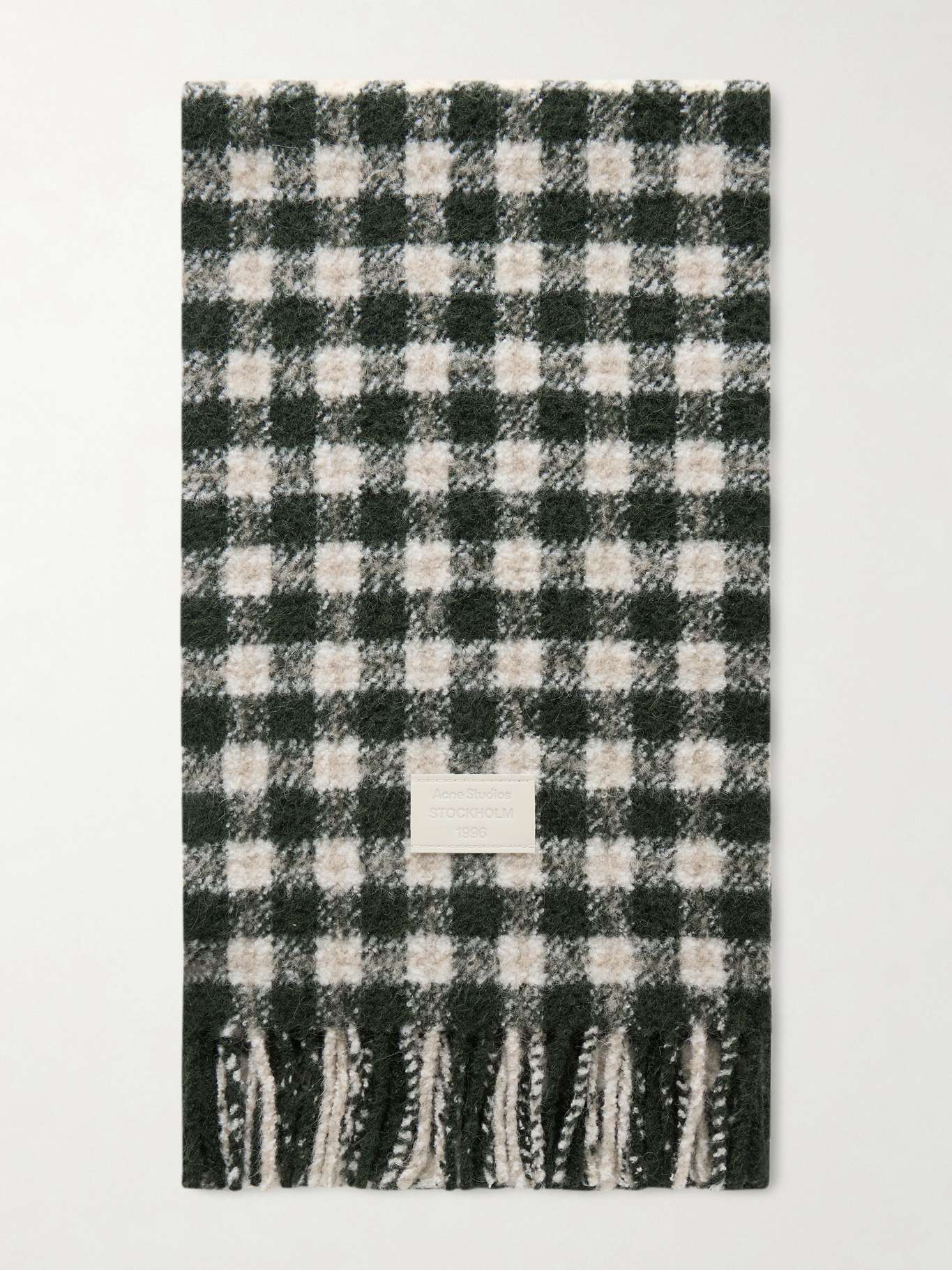 ACNE STUDIOS Fringed Logo-Appliquéd Leather-Trimmed Knitted Scarf