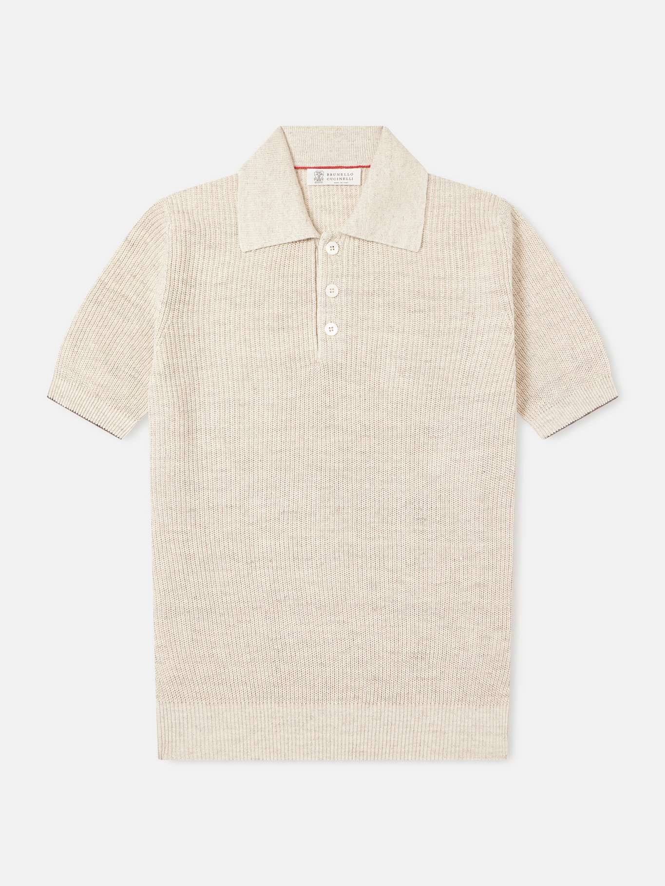BRUNELLO CUCINELLI Ribbed Linen and Cotton-Blend Polo Shirt