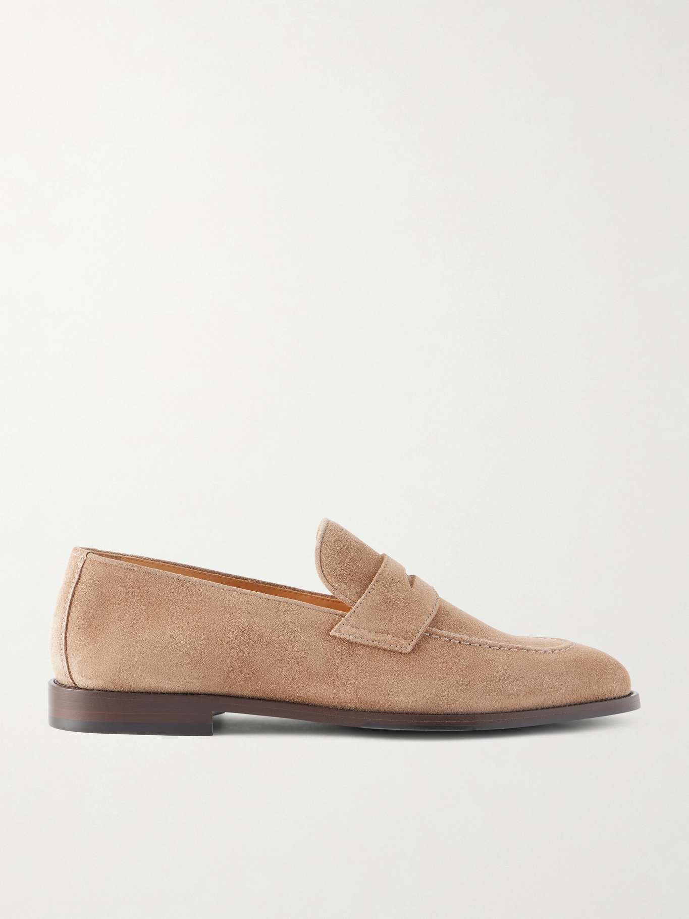 Handmade in Italy, these refined suede loafers by Brunello Cucinelli have a traditional penny slot across the vamp. They're set on rubber soles, so they're lightweight and incredibly comfortable.