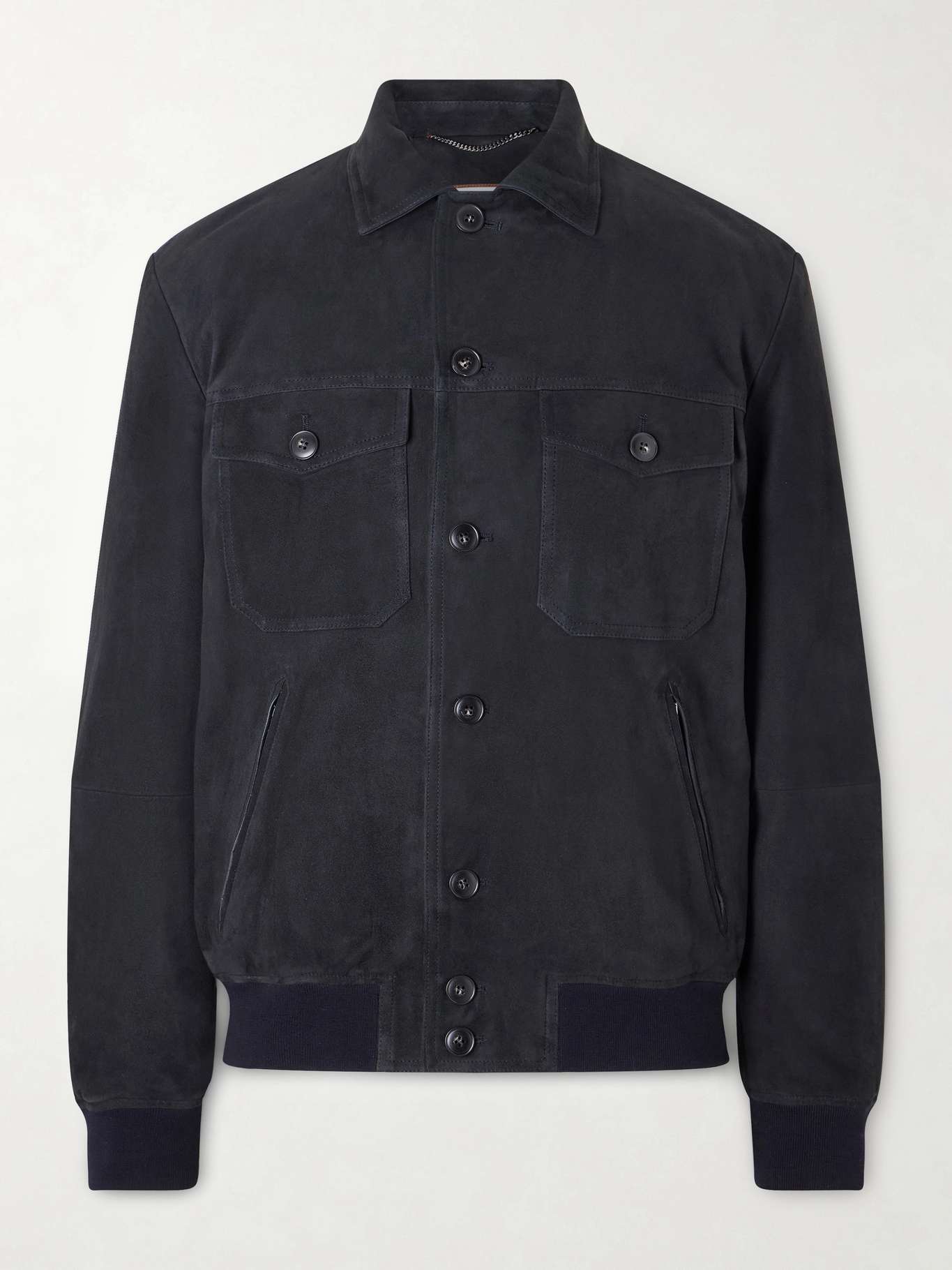 Canali brings its signature refinement to contemporary casualwear. Made from soft suede, this jacket features a streamlined silhouette with a button-through front, utility-style pockets and ribbed trims. Style it over a crisp shirt and tailored trousers or dress it down with dark denim.