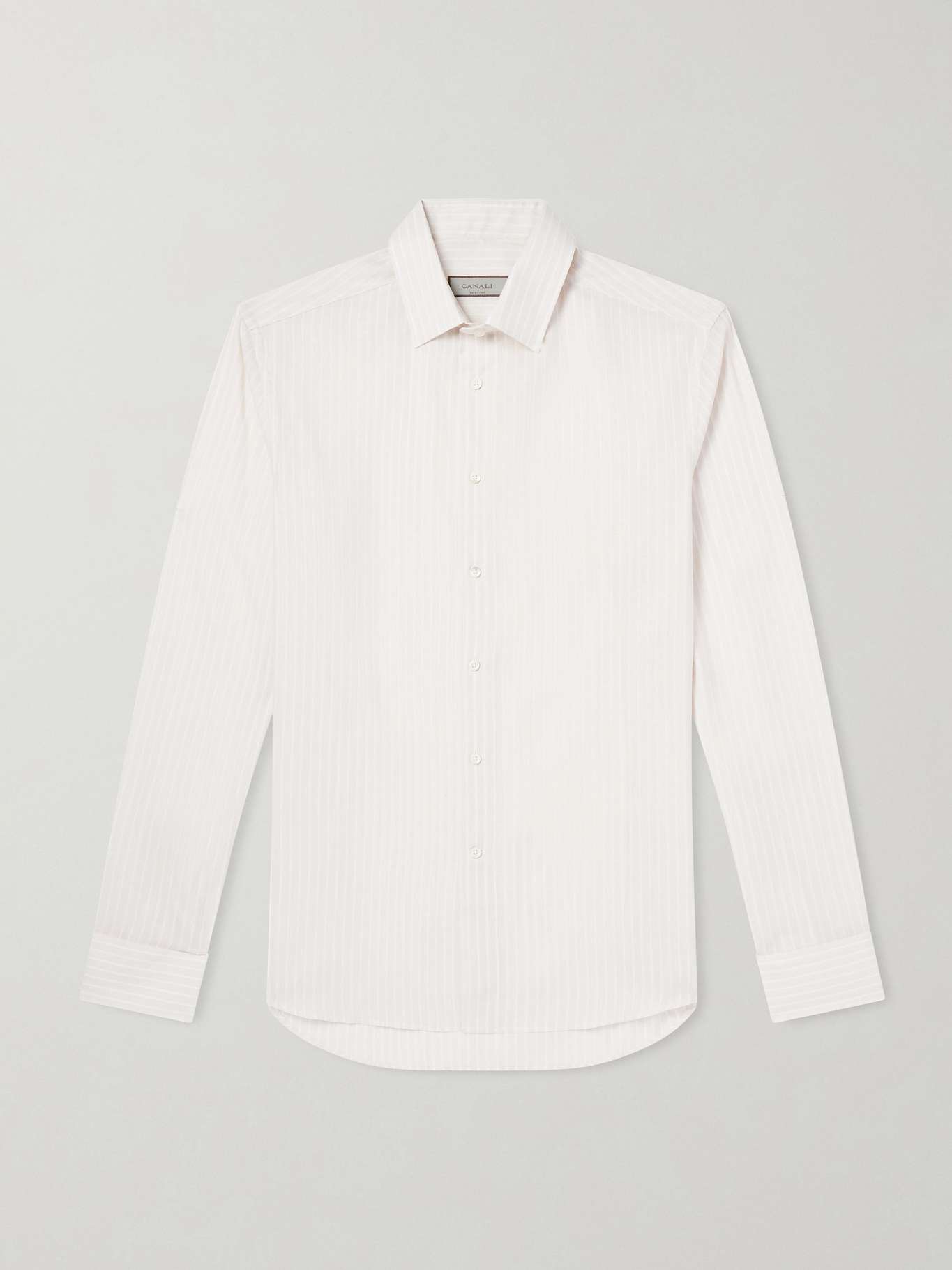 CANALI Slim-Fit Striped Cotton and Linen-Blend Shirt