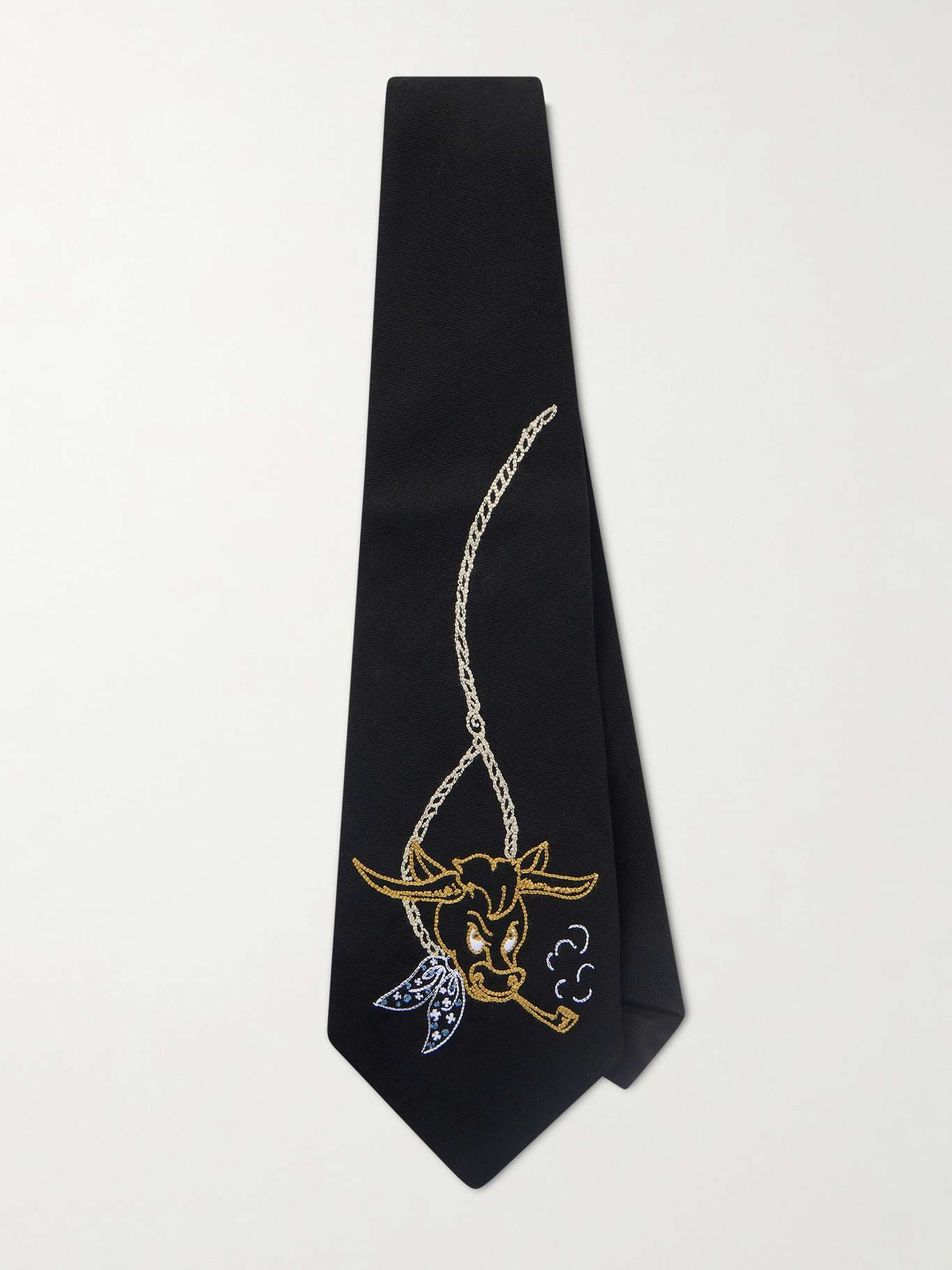 ENFANTS RICHES DÉPRIMÉS Bull 12cm Embroidered Virgin Wool-Twill Tie