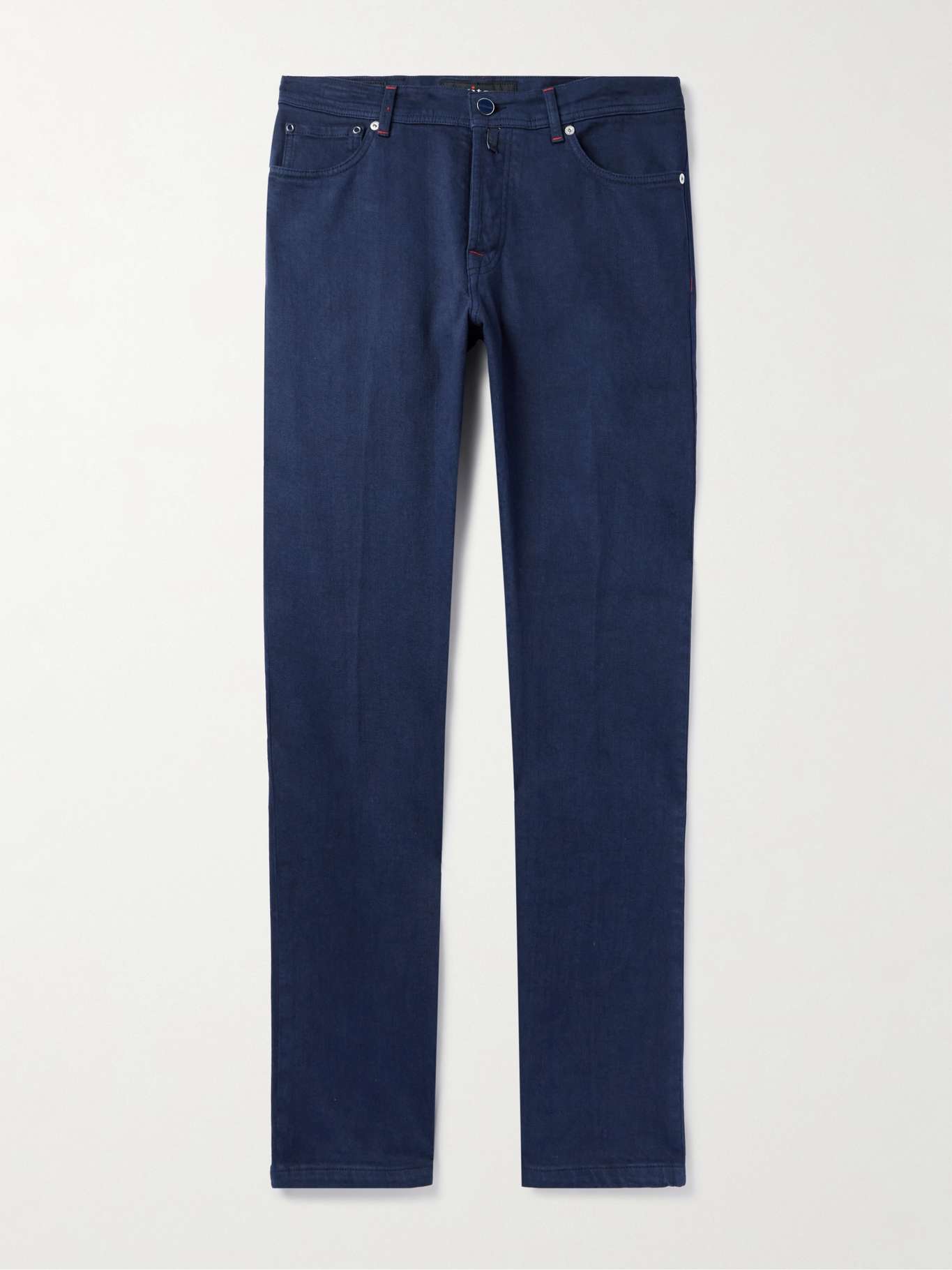Kiton's collections capture the effortless charm of Neapolitan style. These jeans are cut in a classic five-pocket profile from a cotton-blend that's a good deal softer and more flexible than typical denim. The red accents are a brand signature.
