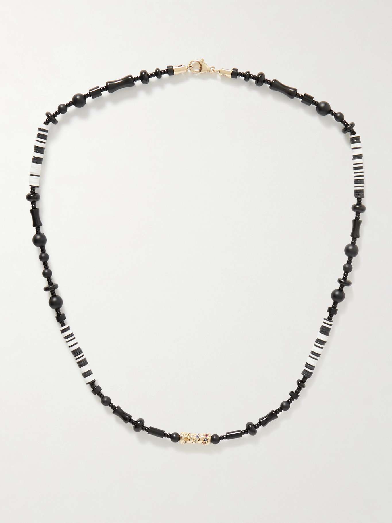 LUIS MORAIS 14-Karat Gold, Agate and Sapphire Beaded Necklace