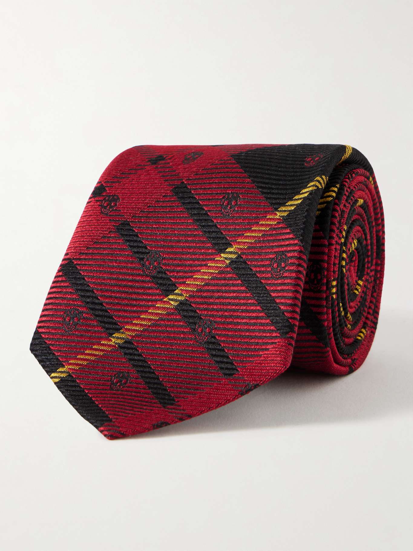 MCQUEEN 8cm Logo-Embroidered Checked Silk Tie