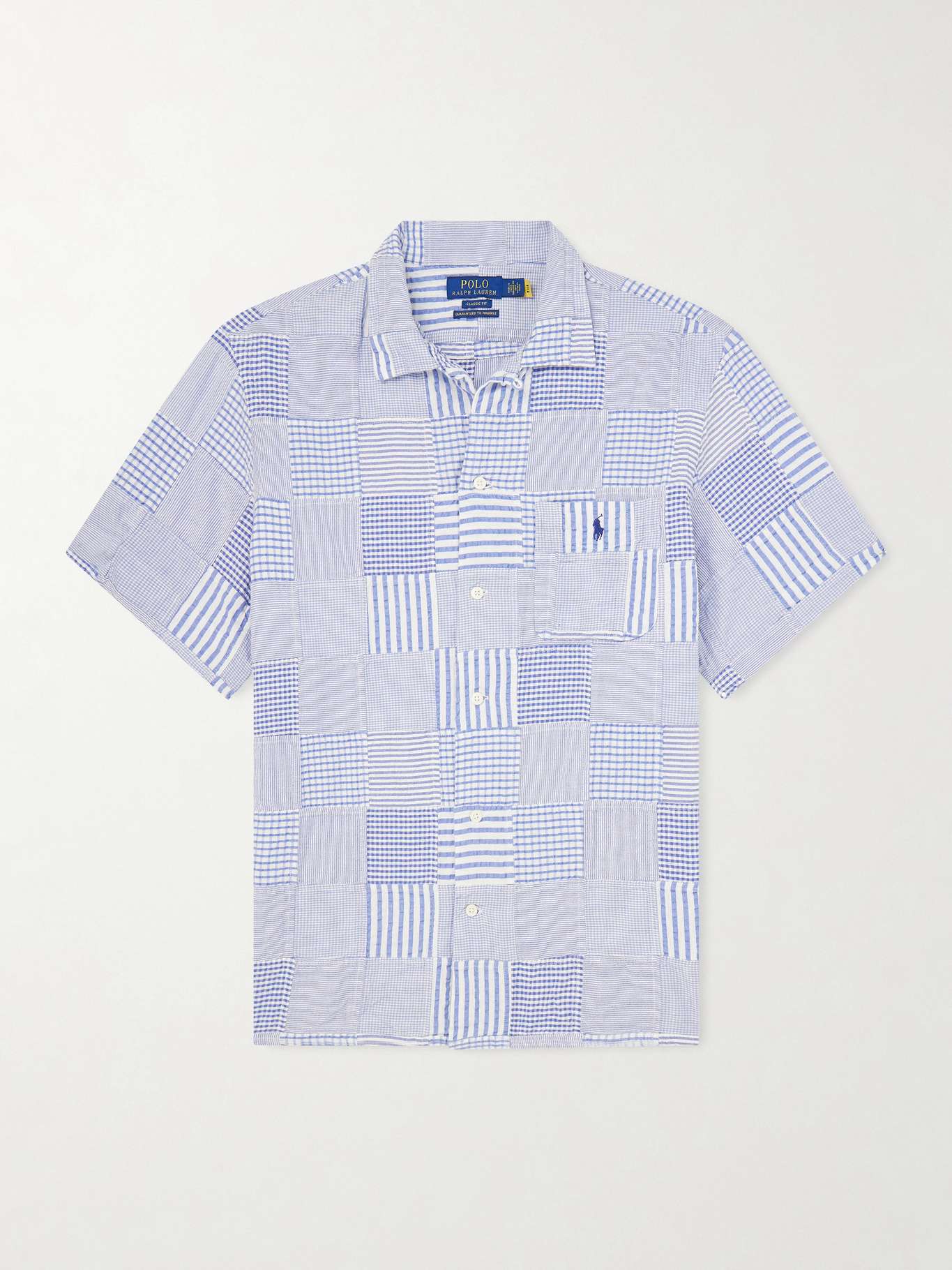 Polo Ralph Lauren's shirt is patchworked with different stripes and checks. It's made from breathable cotton-seersucker and has a relaxed convertible collar. The brand's logo is embroidered at the chest.