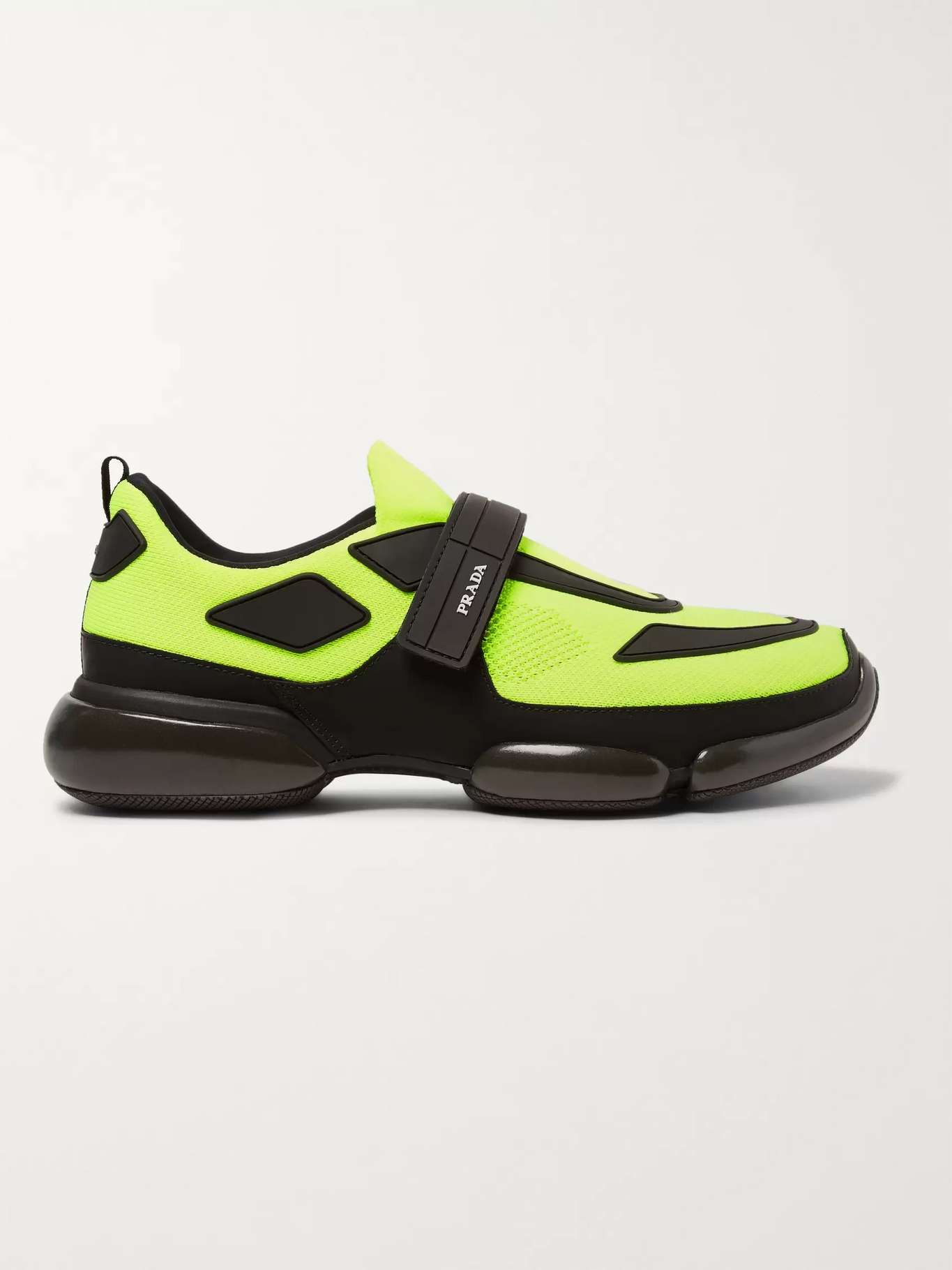 It's hard to believe Prada's 'Cloudbust' sneakers debuted in late 2017 - they've been such a hit, the brand's released a whole new range of colours, but none quite as eye-catching as this neon-yellow pair. They're made from breathable mesh, trimmed in leather and rubber for durability and set on chunky soles. Shown here with Prada jacket, Prada T-shirt, Prada sweatpants.