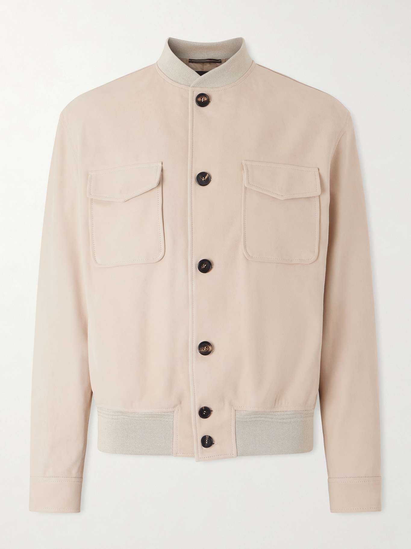 Cut in a classic bomber profile, Slowear's jacket is made from plush suede and framed by ribbed trims. The neutral colour works with denim in all washes.