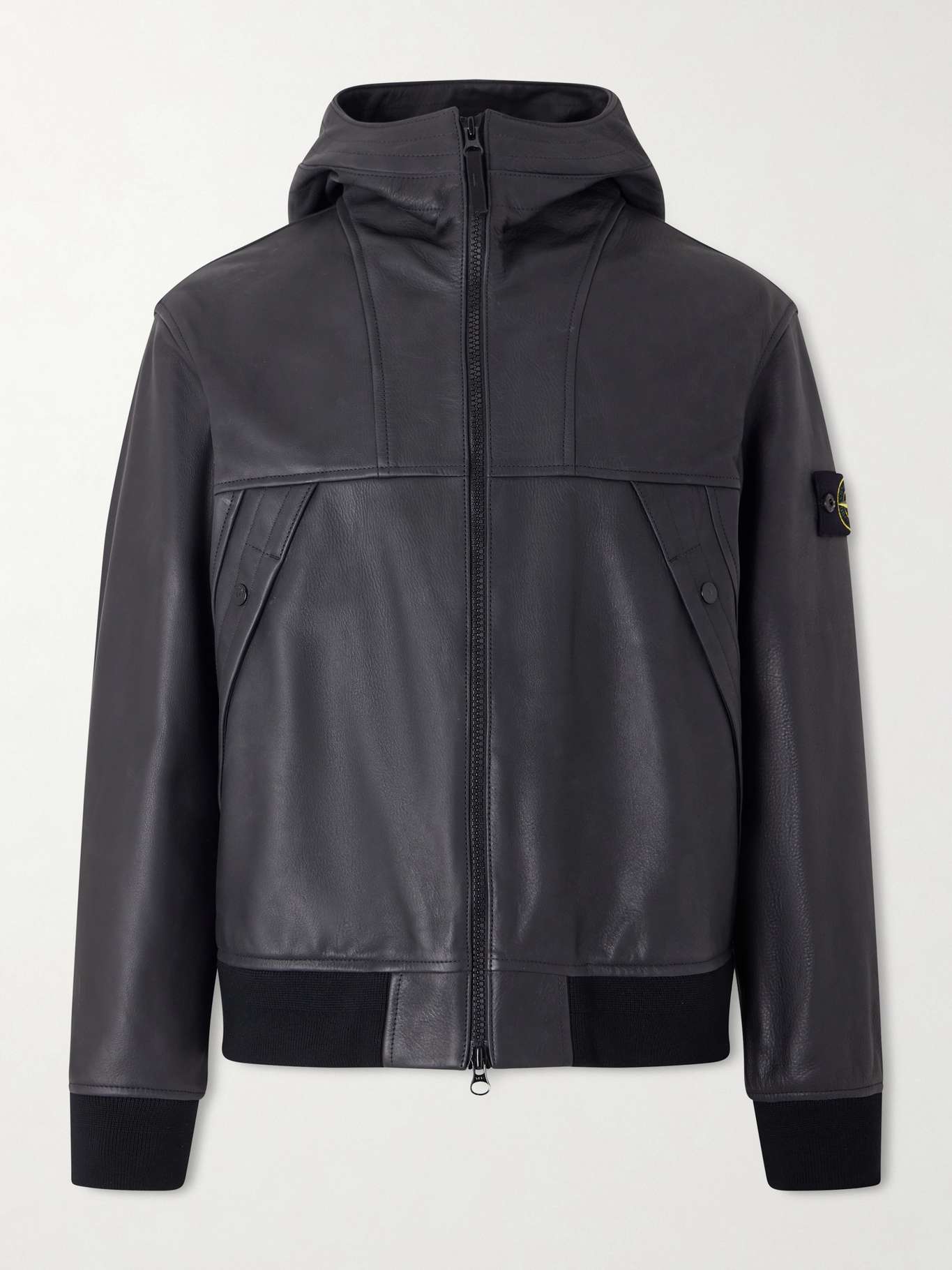 STONE ISLAND Logo-Appliquéd Padded Full-Grain Leather Hooded Jacket