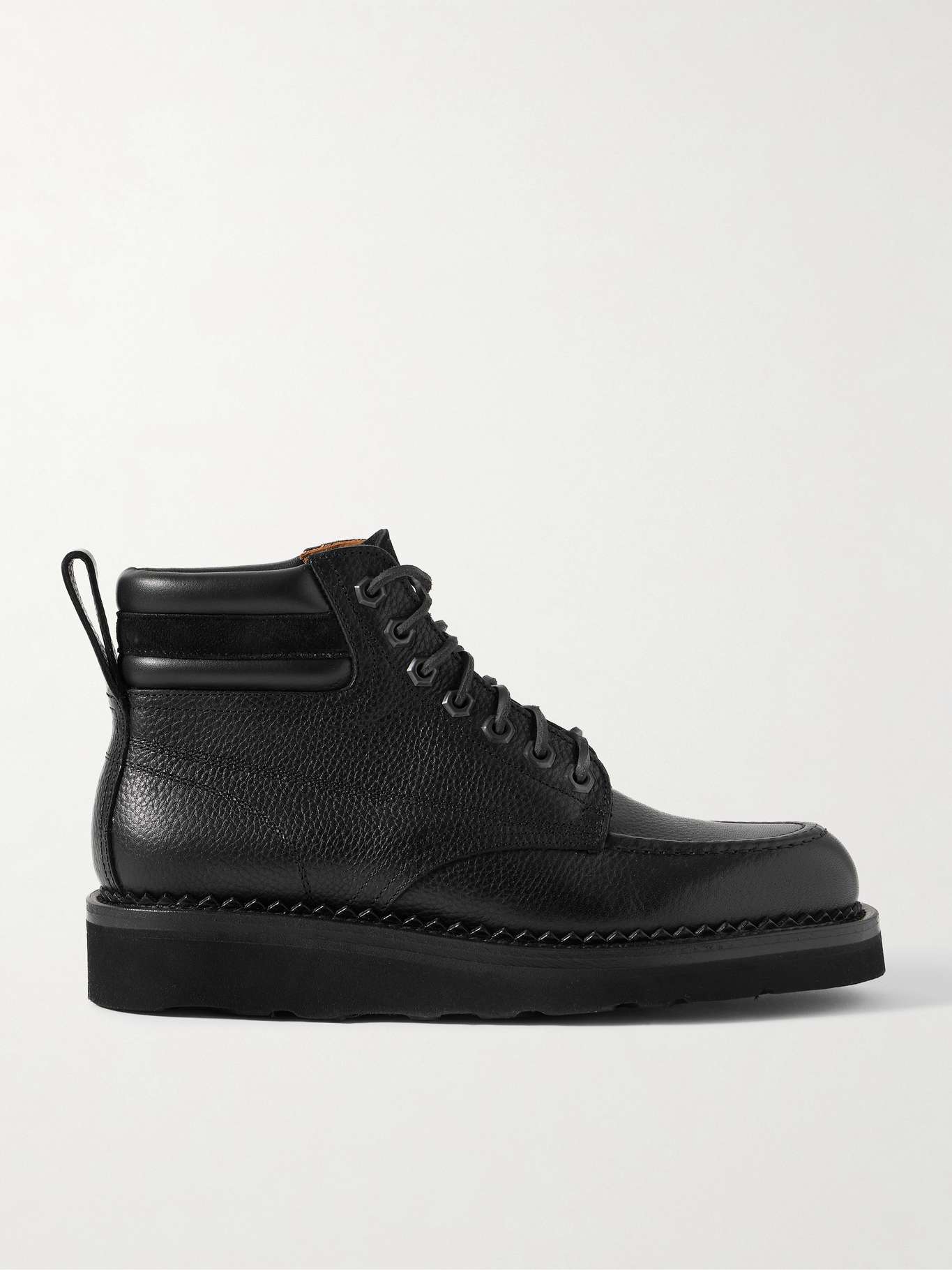 Yuketen's work boots are crafted from premium full-grain leather. Designed with pinked welts, they're trimmed with suede along the padded collars and set on lightweight, durable Vibram Morflex rubber soles for grip.