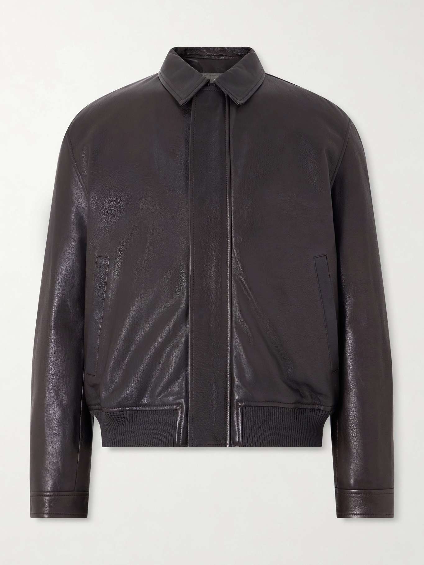Yves Salomon reworks classic biker codes into this bomber jacket. Crafted from textured leather with a structured handle, it’s fitted with silver-tone press buttons and two practical side slit pockets that balance attitude with everyday function.