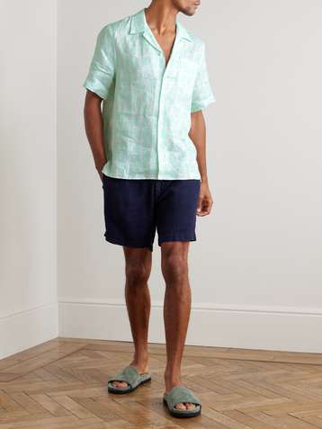 Convertible-Collar Printed Cotton Shirt