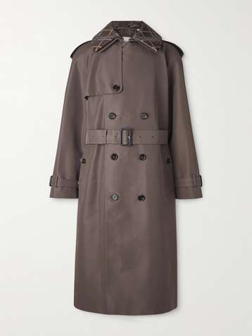 Leather-Trimmed Silk and Cotton-Blend Trench Coat