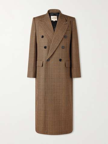 Double-Breasted Prince of Wales Checked Virgin Wool Coat