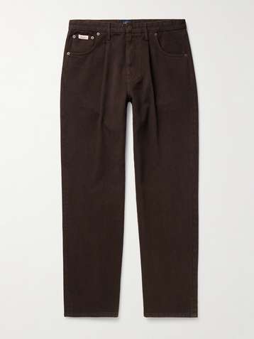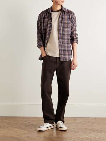 Straight-Leg Pleated Brushed Organic Cotton-Twill Trousers