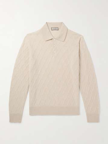 Cable-Knit Wool and Cashmere-Blend Polo Shirt