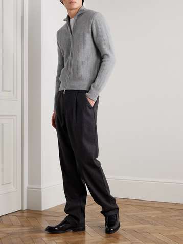 Wide-Leg Pleated Wool-Flannel Suit Trousers