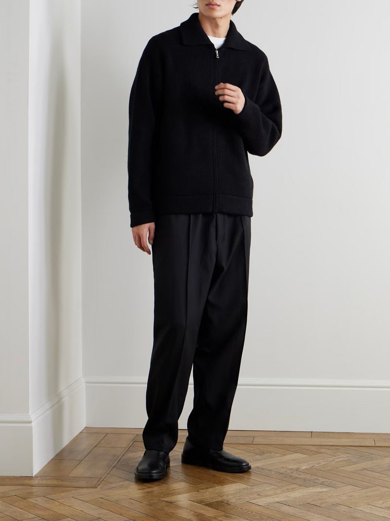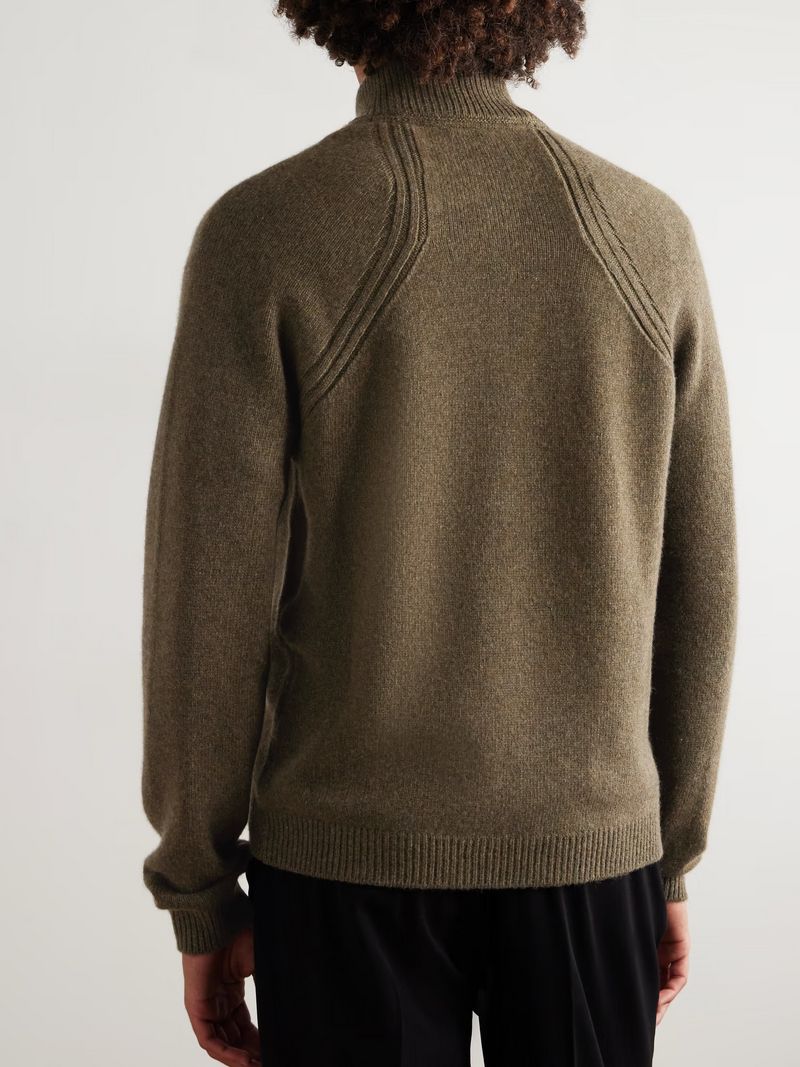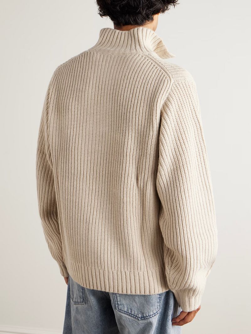 But the story gets even more complicated than that. You see, the modern quarter zip is really a tale of two sweaters. On one hand, there’s the one you know. “The corporate-toned, relatively thin, merino-wool kind, which continues to be the de facto replacement of the blazer in the City and it’s highly unlikely that will change,” says Benedict Browne, Style Director at MR PORTER. “It’s by no means exciting, nor is it meant to be.”
