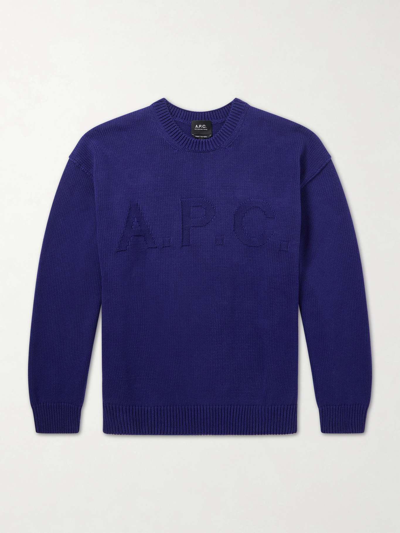 A.P.C.'s sweater is intarsia-knitted with its initials at the chest. It's made from pure cotton that's dyed a deep blue and has a relaxed fit, with ribbing along the edges.