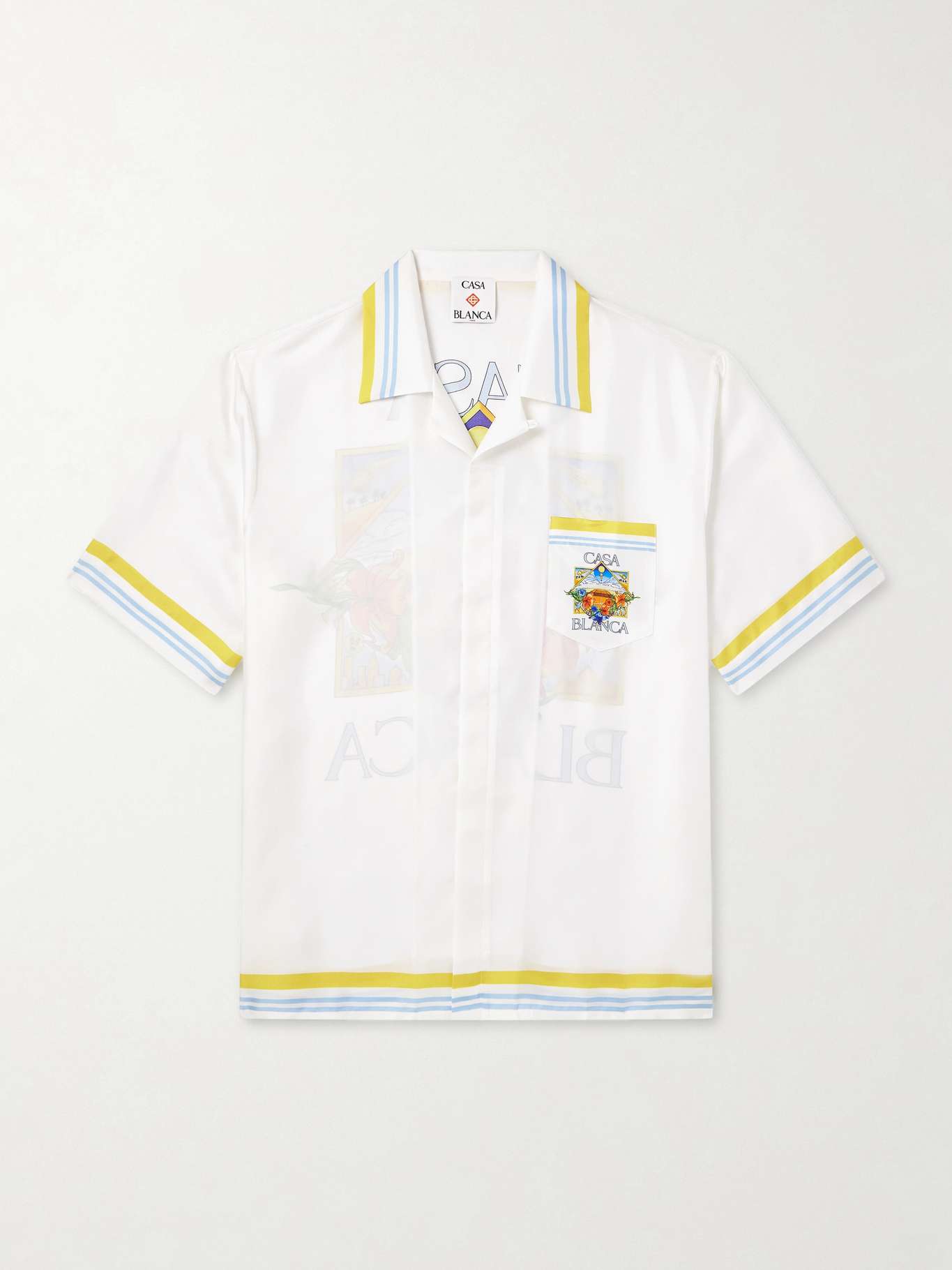 A nod to Casablanca's sporty aesthetic, this shirt is printed with a vibrant tennis landscape at the back. It's cut from breezy silk-twill to a relaxed fit and tailored with a camp collar for a retro feel.