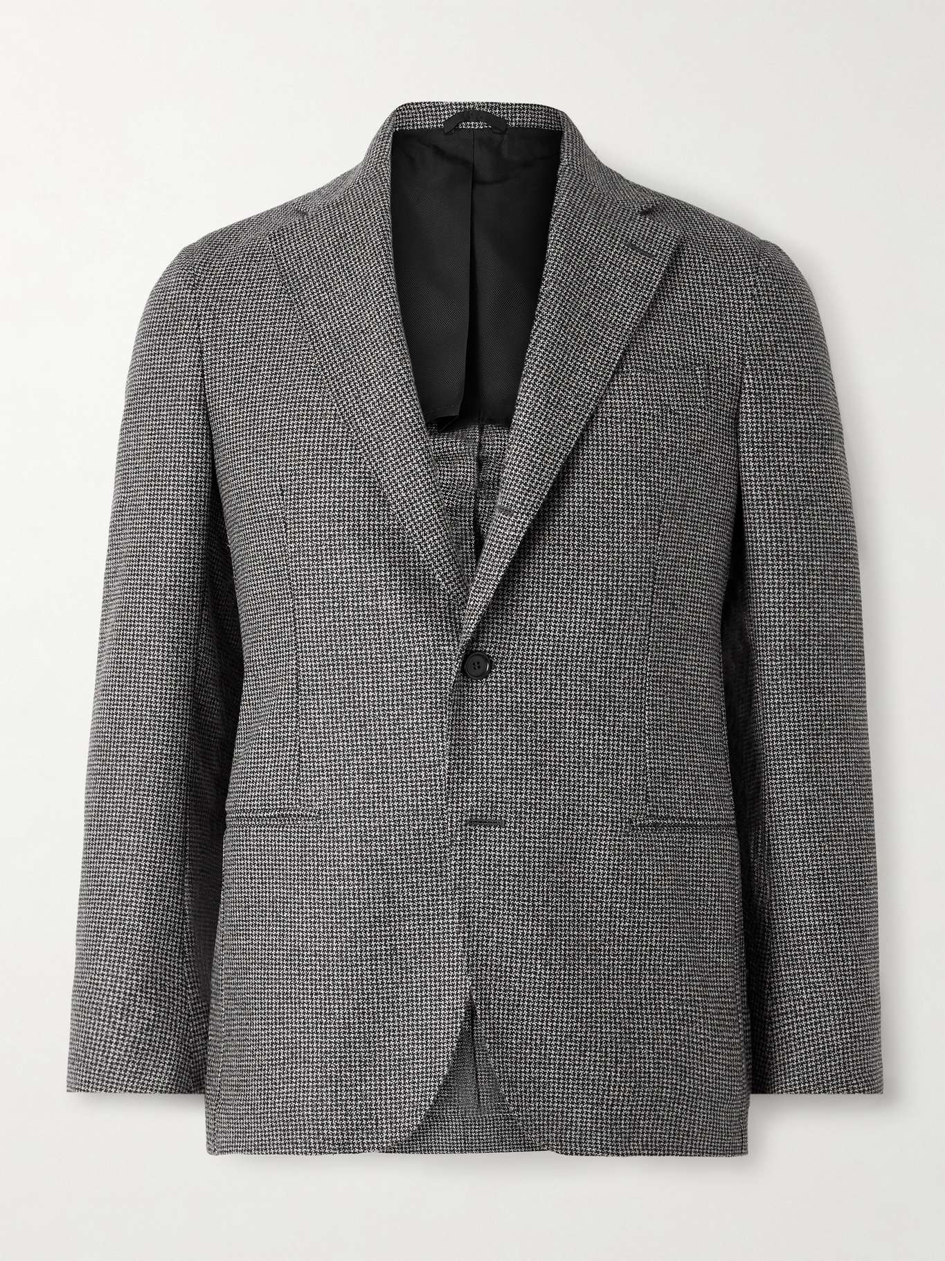 De Petrillo's 'Napoli' suit jacket is made from houndstooth wool in a classic single-breasted profile. As customary with Neapolitan tailoring, it's partially lined to keep it light and unstructured. The back has a double vent to reduce wrinkling when seated.