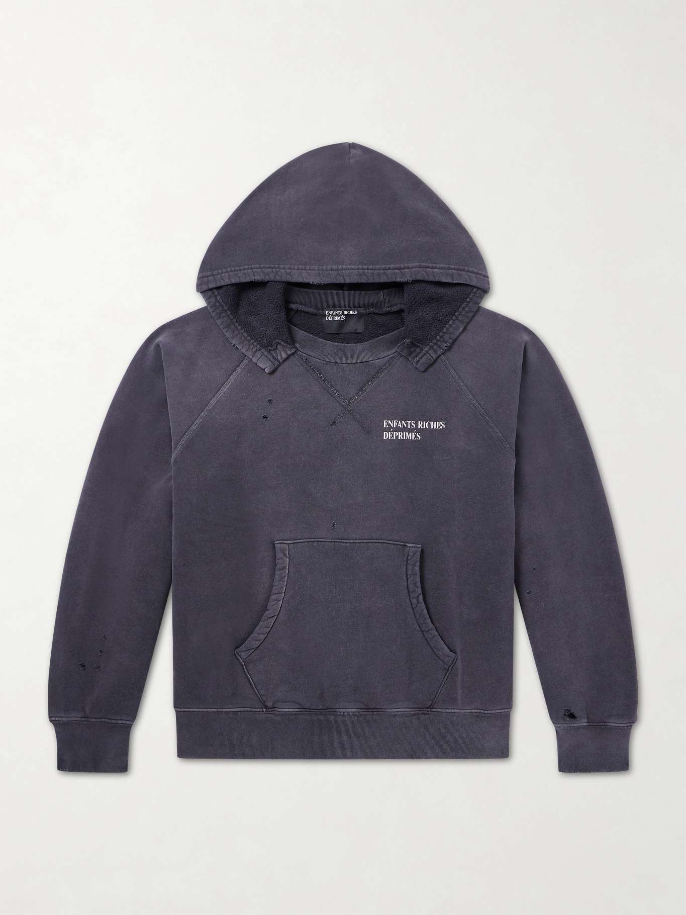 ENFANTS RICHES DÉPRIMÉS Cropped Logo-Print Distressed Cotton-Jersey Hoodie