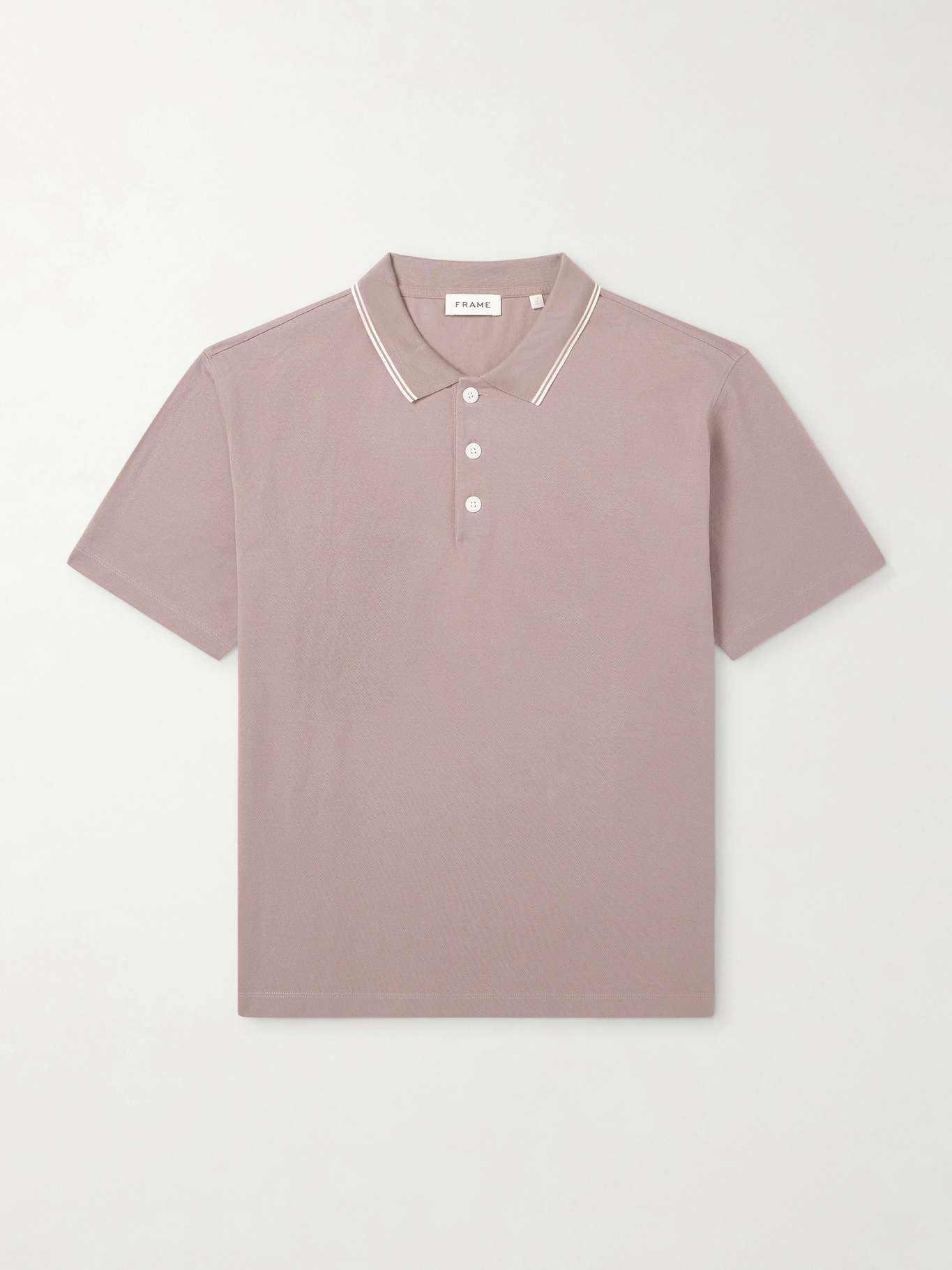 FRAME Striped Cotton-Piqué Polo Shirt