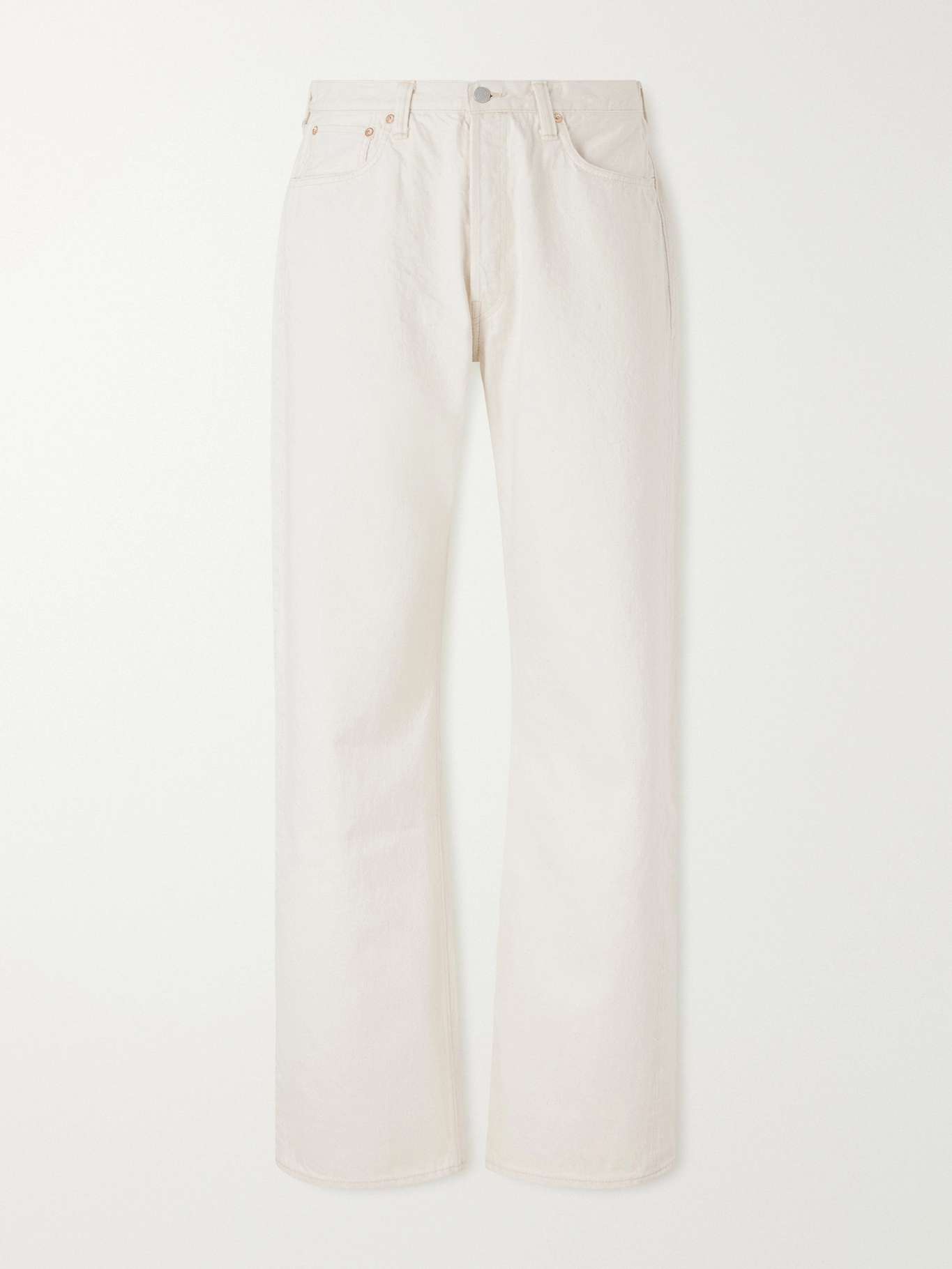 FULLCOUNT's jeans are cut for a relaxed straight-leg silhouette from undyed, unbleached selvedge denim. The fabric develops a subtle variation with wear and washing, revealing the material's inherent character while retaining a structured profile.