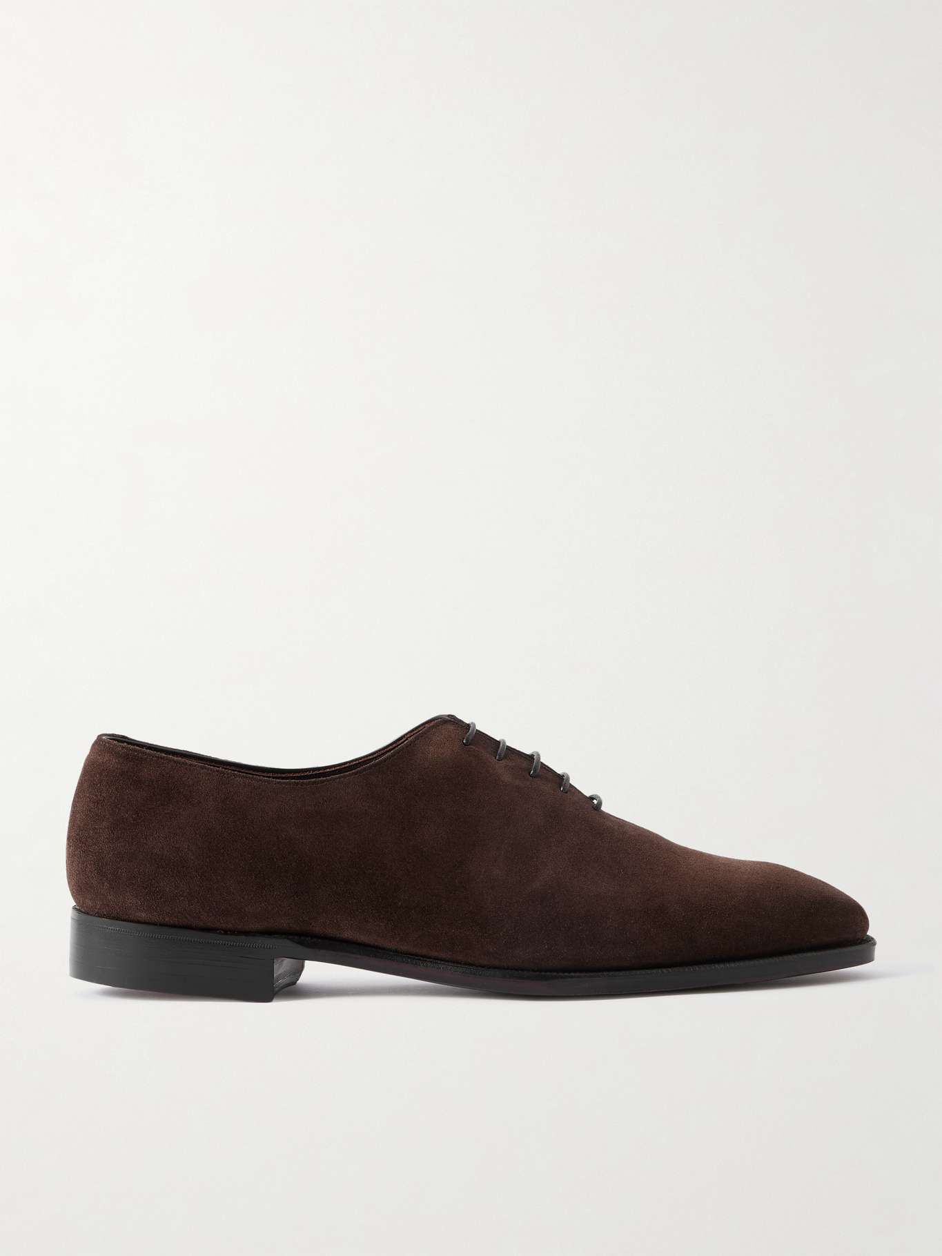 All of George Cleverley's shoemakers go through a rigorous apprenticeship lasting three to five years, ensuring each pair is made to the highest standard. These 'Merlin' Oxford shoes are cut from a single piece of suede and set on Goodyear-welted soles for long-lasting comfort.