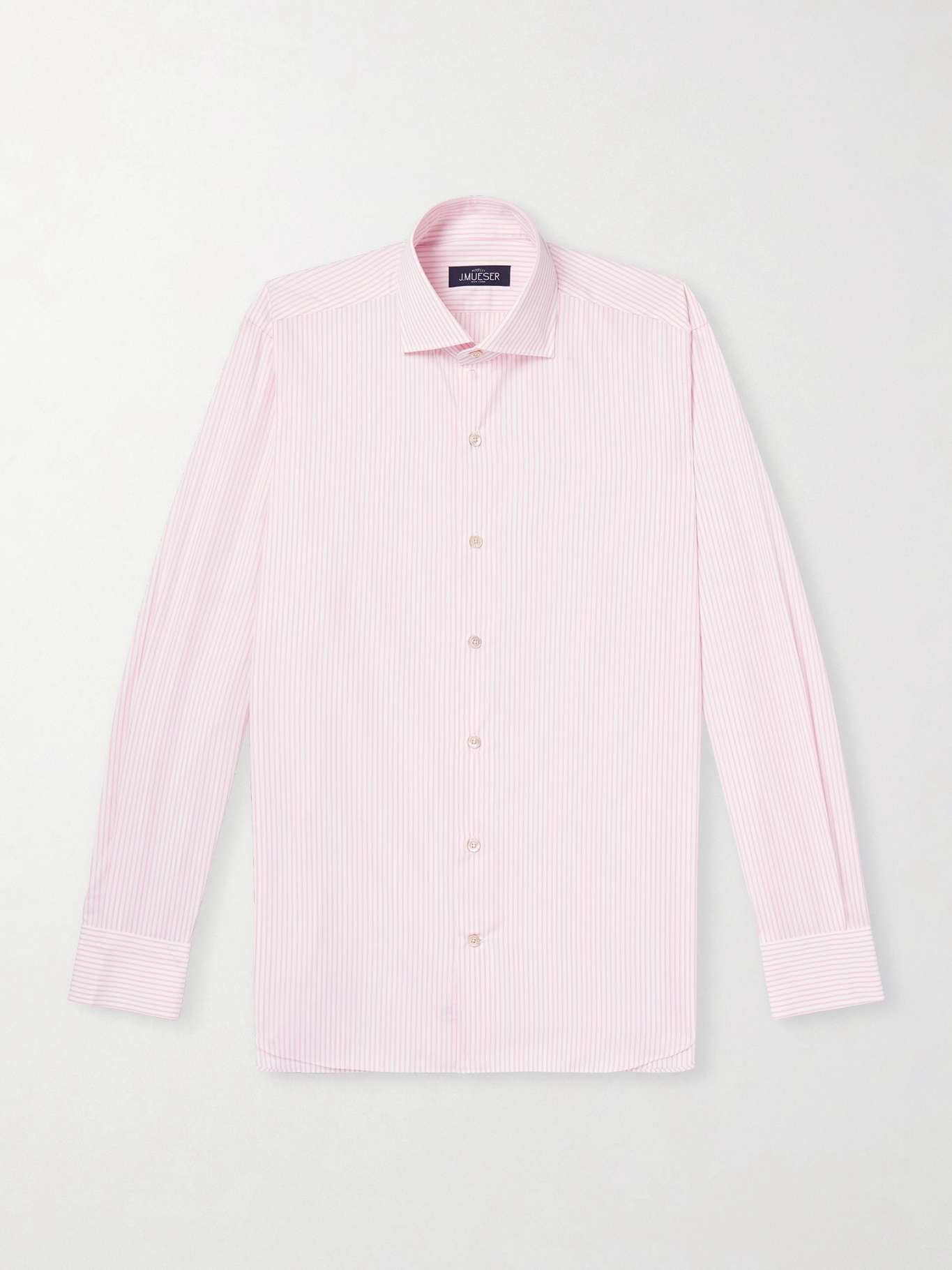 J Mueser's shirt has been made in Naples from pure cotton and tailored with barrelled cuffs and a spread collar. The sleeves and button holes are handsewn, underscoring the brand's attention to detail.