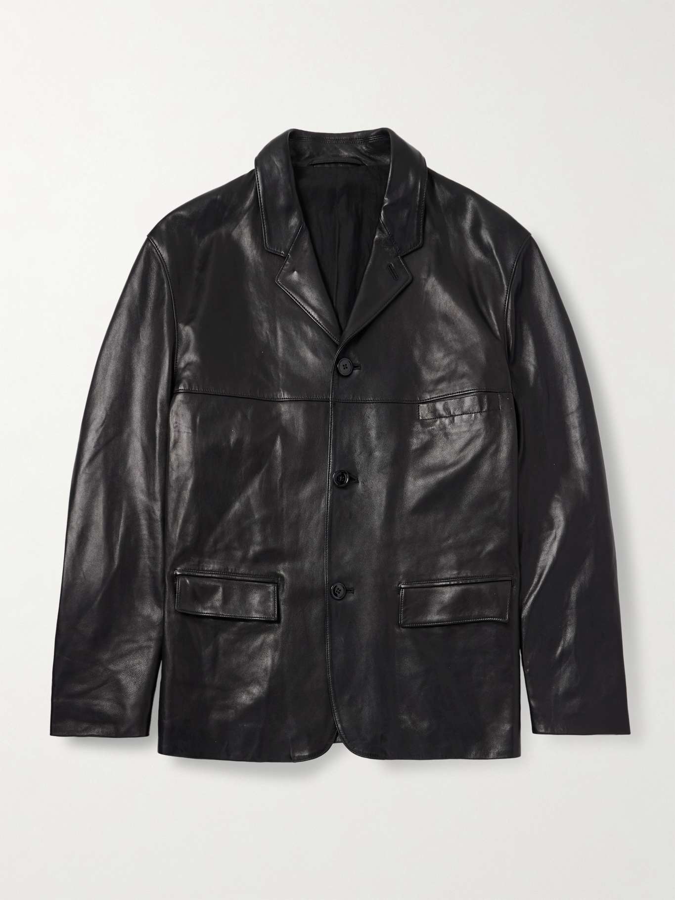 Tailored in the shape of a single-breasted blazer, LEMAIRE's jacket is made from leather, chosen for its buttery feel. It has notch lapels, three front pockets and a full lining for structure.