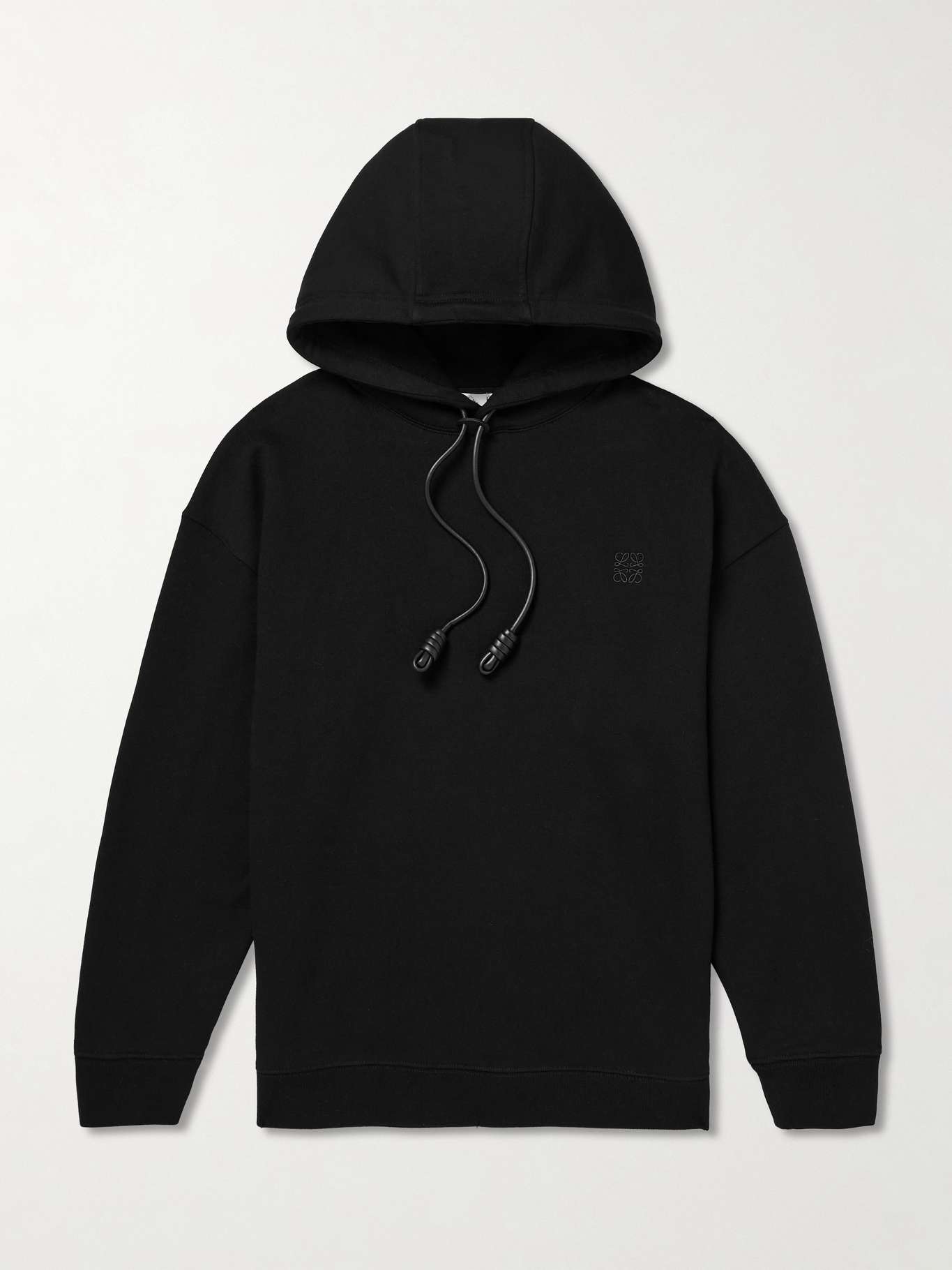 LOEWE Logo-Embroidered Leather-Trimmed Cotton-Jersey Hoodie