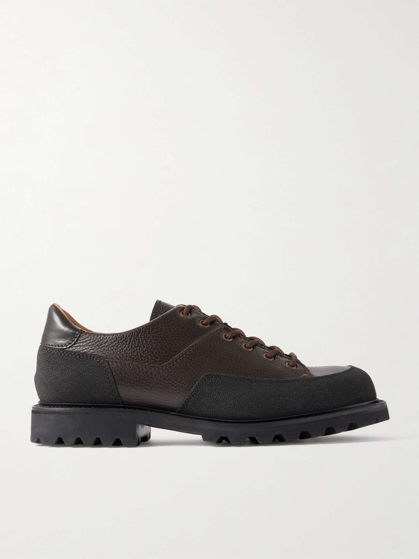- Brown and black full-grain leather
