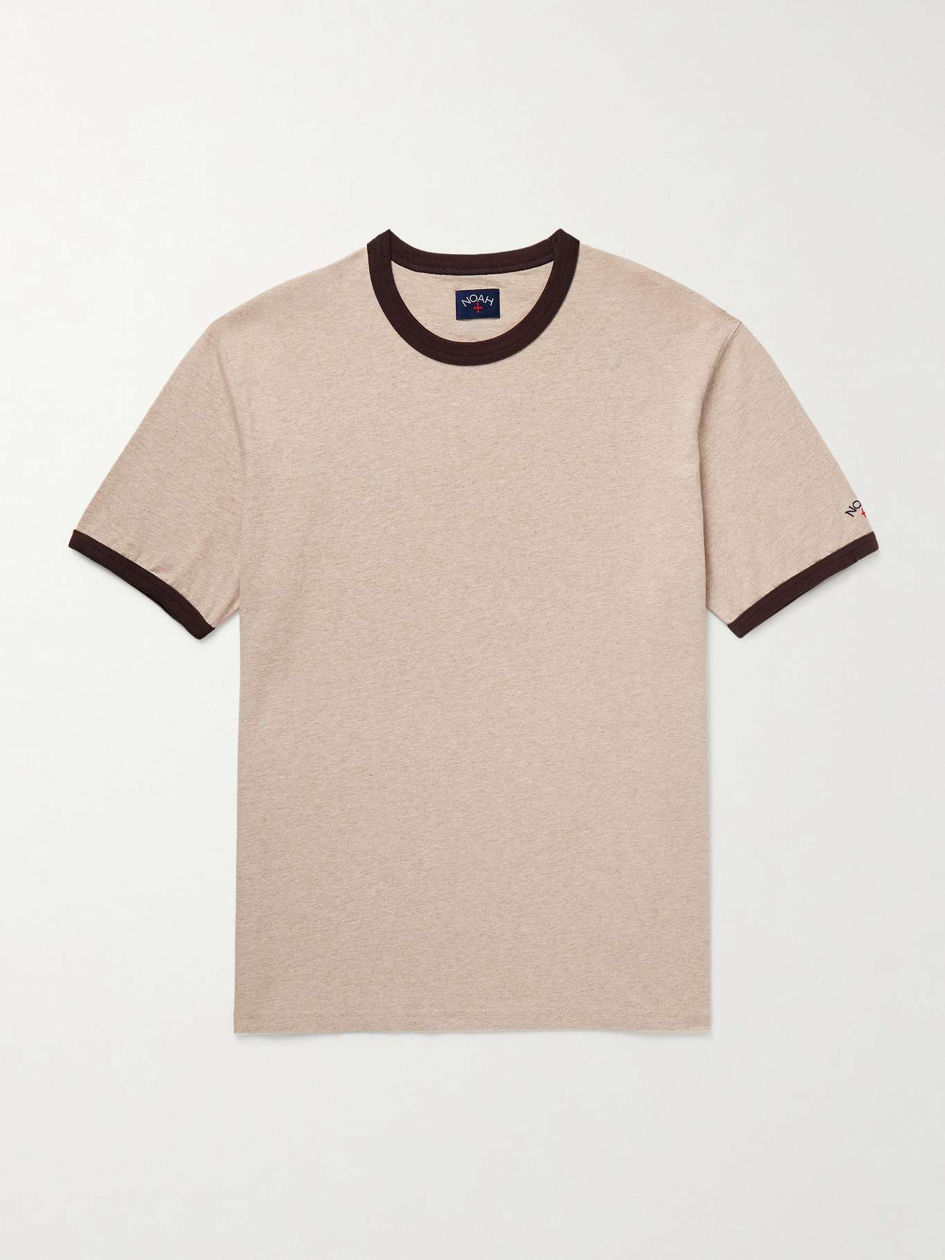 Noah's T-shirt feels undeniably vintage, thanks to its 'Ringer' neckline and cuffs. It's cut from lightweight cotton-jersey and embroidered with a signature logo on the sleeve.