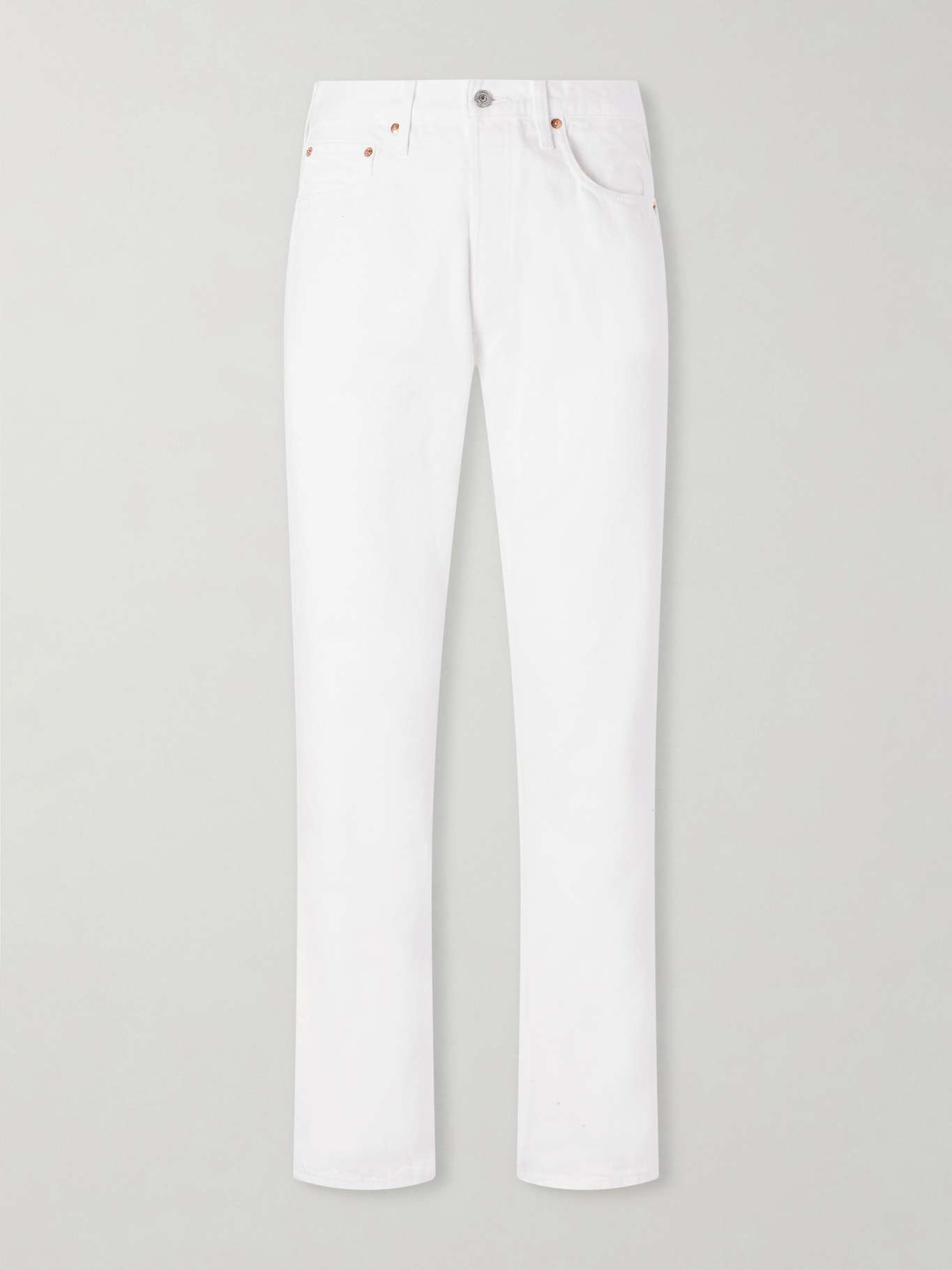 Founded by Ichiro Nakatsu, orSlow revisits vintage Americana through Japanese craftsmanship. These '90s straight-leg jeans are cut from denim with a slightly relaxed fit, buttoned closure, classic five-pocket construction and a signature worn leather patch at the back.