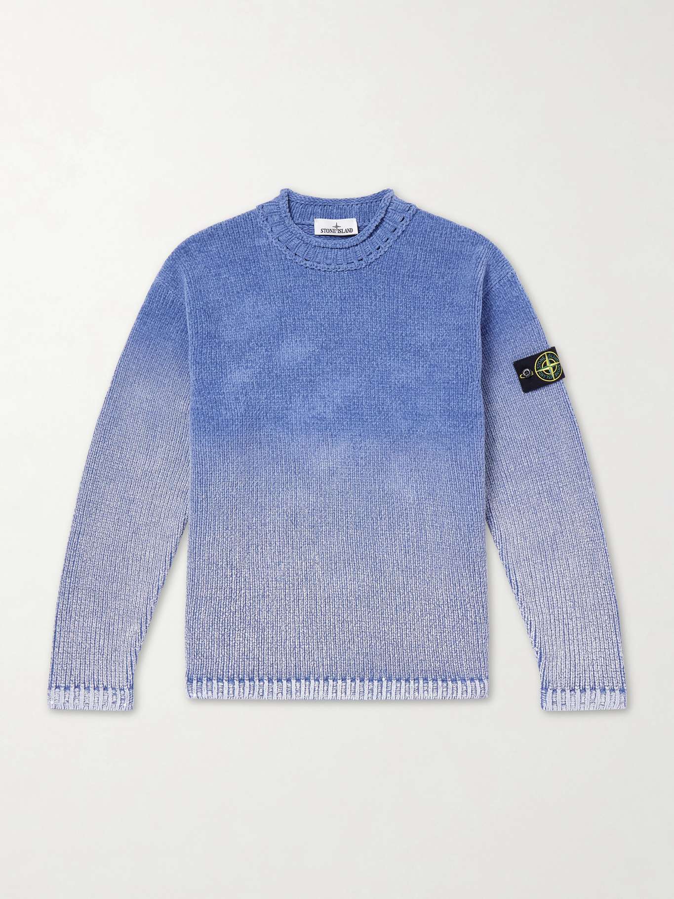 STONE ISLAND Logo-Appliquéd Dégradé Cotton-Chenille Sweater