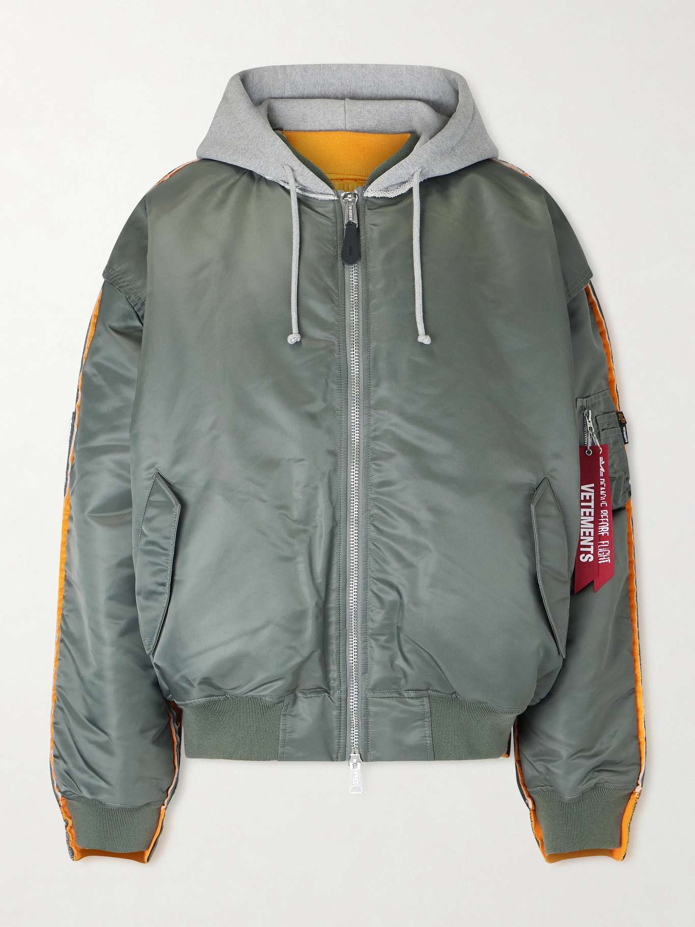 Recognisable by its oversized cut and signature webbing pull tab, bomber jackets like this one have been a mainstay in Vetements' collections since its inaugural seasons. Made from lightweight shell, padded for warmth and to enhance the shape, it's fitted with a soft cotton-jersey hood and ribbed trims.