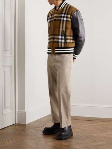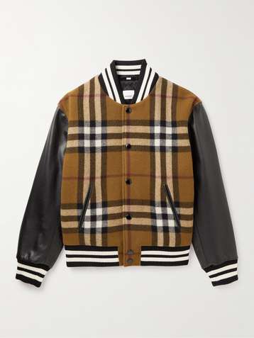 Checked Wool-Blend and Full-Grain Leather Varsity Jacket