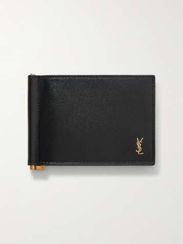 Logo-Embellished Leather Billfold Wallet with Money Clip