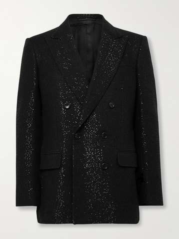 Double-Breasted Sequinned Wool-Blend Suit Jacket