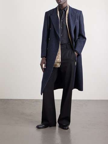 Waldorf Double-Breasted Pinstriped Virgin Wool Coat