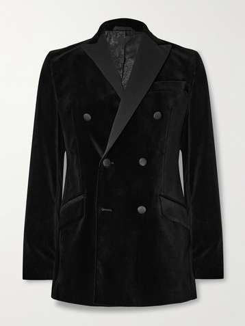 Slim-Fit Double-Breasted Cotton-Velvet Tuxedo Jacket