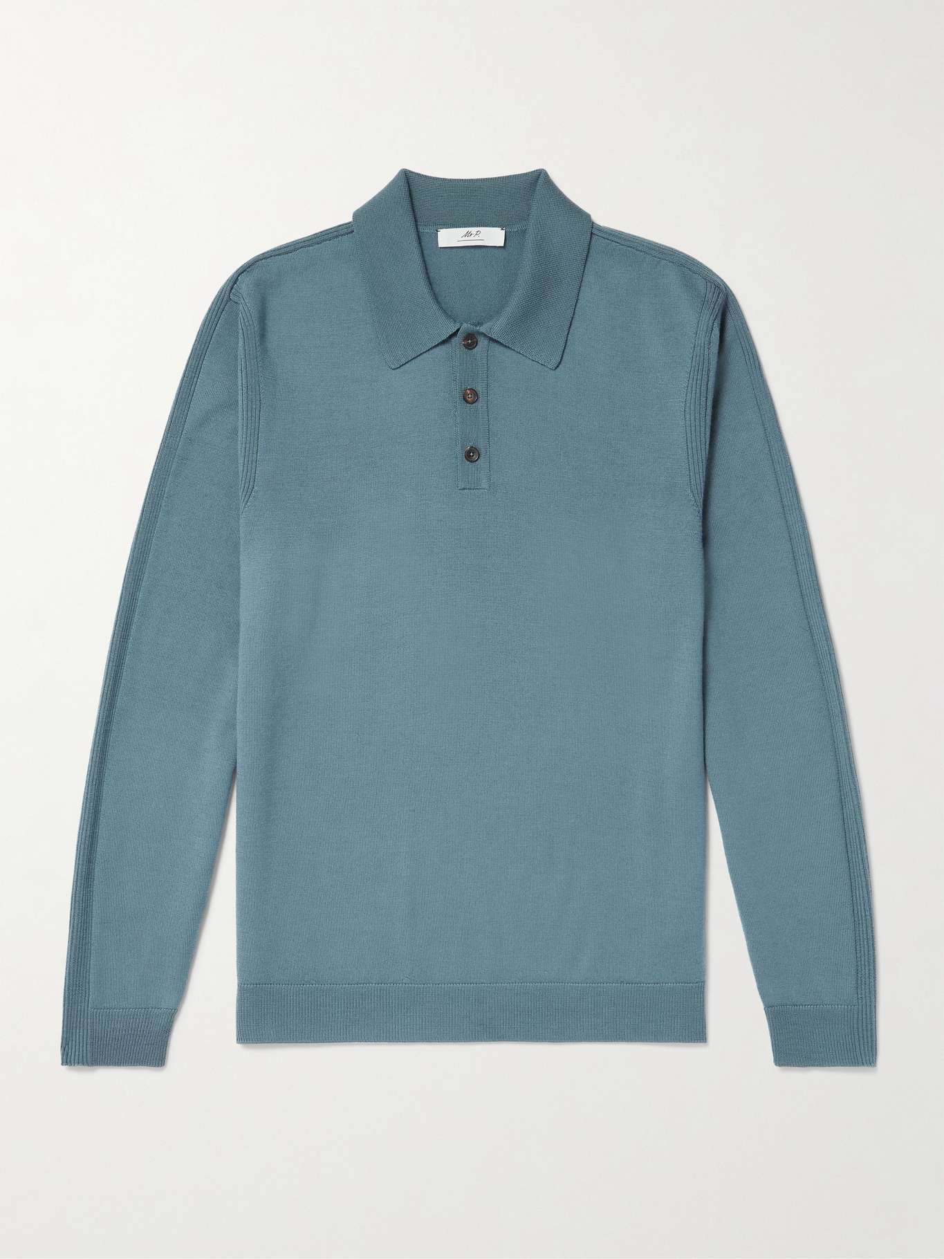 DESIGNED BY MR PORTER. Mr P. always begins with fabric when designing. This polo shirt is knitted from merino wool, promising natural warmth and longevity. Note the ribbed stitches at the shoulder and along the sleeve, which add dimension.
