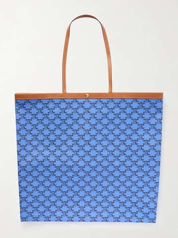 Triomphe Leather-Trimmed Logo-Print Coated-Canvas Tote Bag
