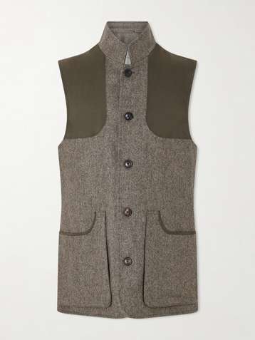 Faux Suede-Trimmed Wool-Tweed Gilet