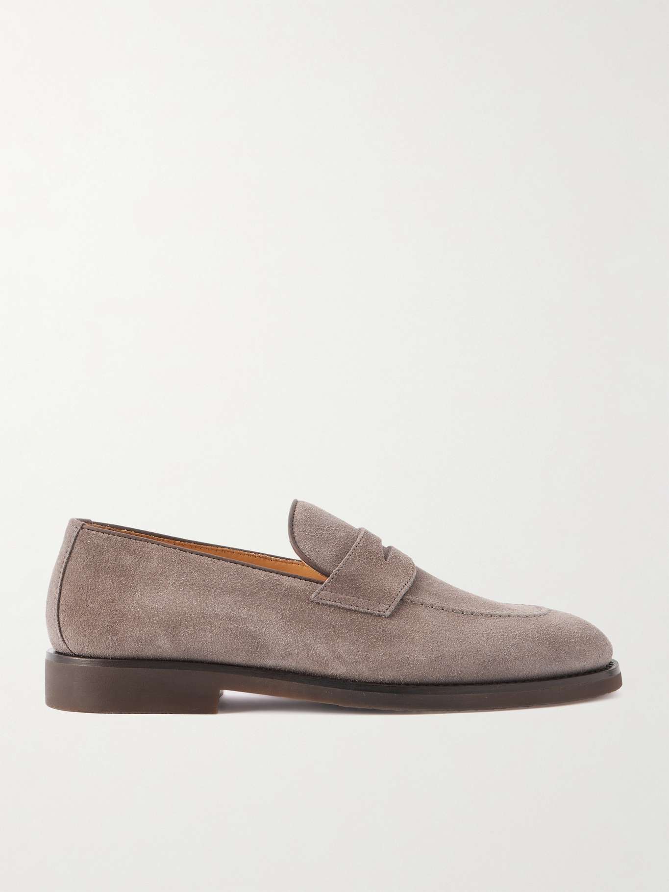 EXCLUSIVE AT MR PORTER. Brunello Cucinelli's designs are backed by meticulous Italian craftsmanship, evident in the quality materials and precise, hand-stitched finishes. Made in Italy from buffed suede, these penny loafers are trimmed with leather and set on rubber-crepe soles for traction.