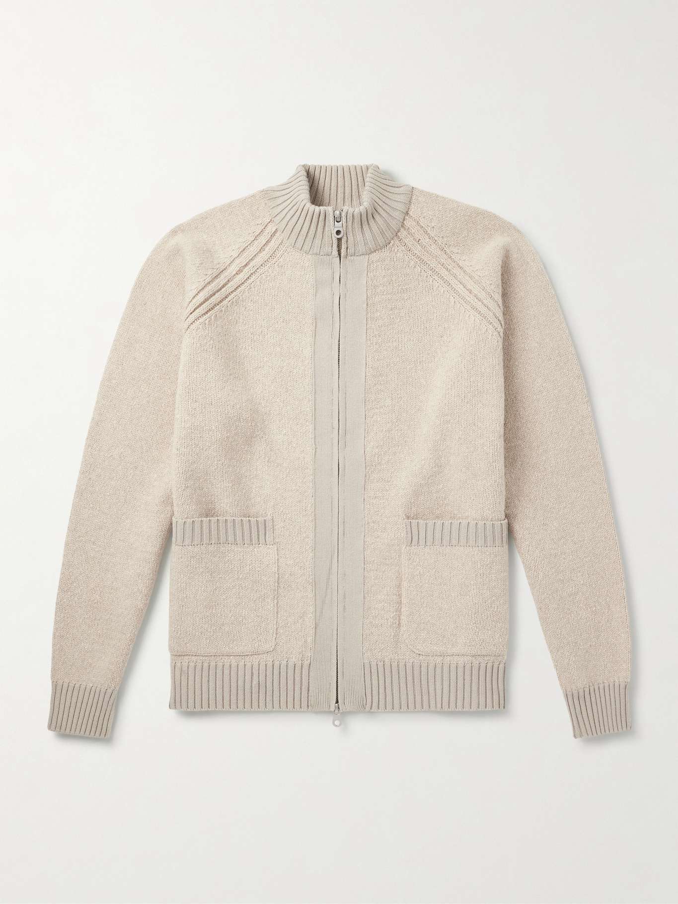 Folk's cardigan is modelled after traditional bomber jackets. It's blended with wool and cotton and has ribbed trims and raglan sleeves that help define its shape.