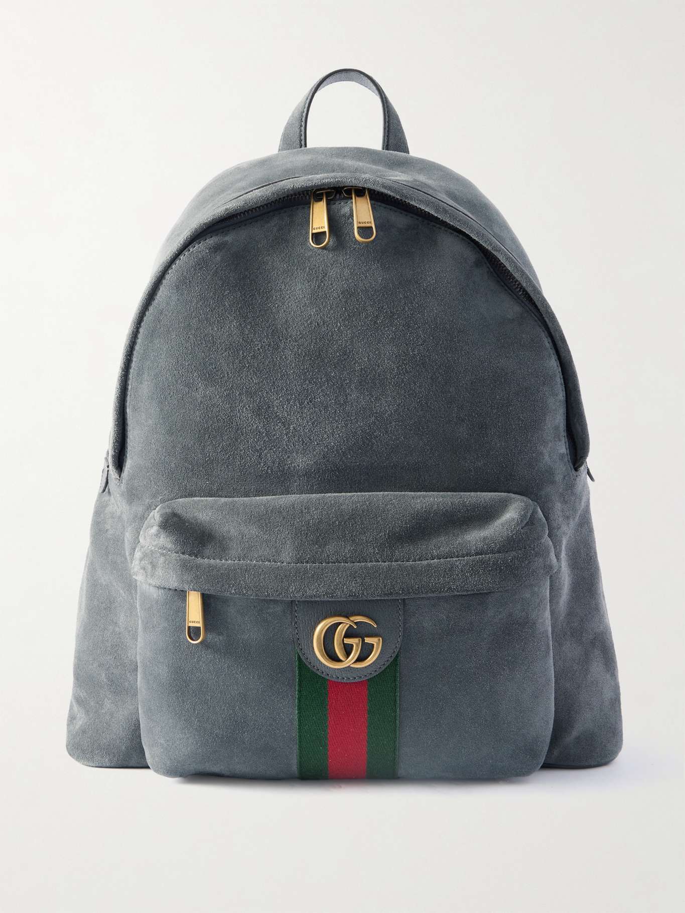 GUCCI September Logo-Appliquéd Canvas-Trimmed Suede Backpack