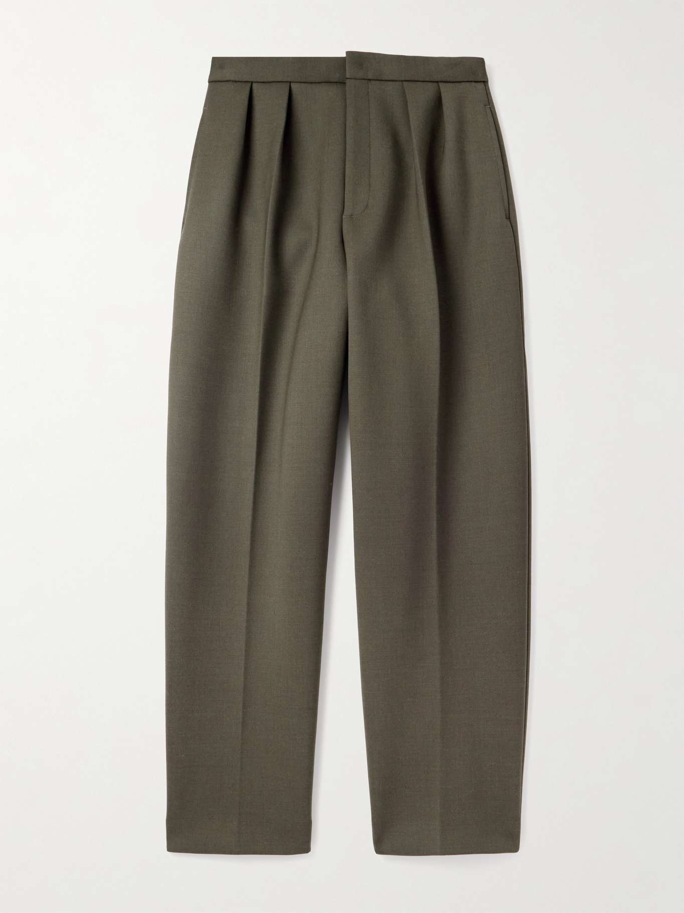 Jacquemus' trousers are tailored with double pleats and sharp creases through the straight legs. They're made from wool-blend and feature a 'J' shaped loop at the back waist.