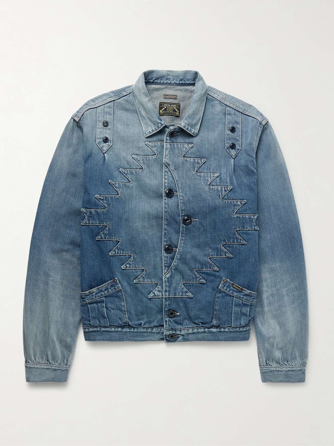 KAPITAL experiments with new ways to reinvent denim each season. Made from panels of the material, this 'Thunderbird' blouson jacket is thoroughly washed and faded to look and feel like an old favourite.